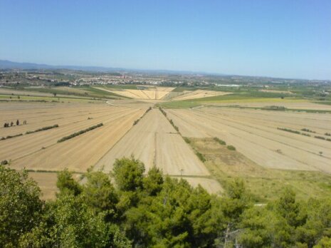 Wenn Sie Richtung Beziers blicken, sehen Sie in der Ebene unter dem Oppidum den seltsamen Etang de Montady, ein riesiges früheres Marschland, das im 13. Jh. von einem Mönchsorden trockengelegt und in Ackerland verwandelt wurde.Ein prächtiges Kreisdiagramm mit Dutzenden von engen Keilstücken, besonders zur Blütezeit in herrlicher verschiedener Tönung, die eine Landscheibe in der Mitte einkreisen.
